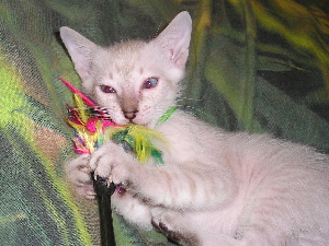 We breed Seal, Chocolate, Blue and Lilac points, as well as all these colors in tabby. From time to time we have kittens available for responsible persons.