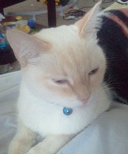 I took pics of her and showed my parents and niece who told me that she is a flame point or red point Siamese, so I looked up the name and sure enough she is a perfect match, right down to her amazing blue eyes.
