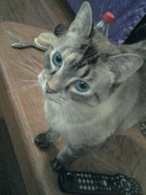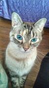 At the time we didn't know what breed she was. She was listed at the shelter as a Siamese mix, and it was not until a year later that we found out she was a Lynx Point Siamese. A nice vet told us.