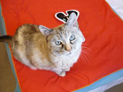 We thought "an older cat, she'll be a nice sedate companion to Merlin". She had other ideas. The minute I opened the spare bedroom door to put her in for her acclimation period, she raced around the house, bouncing off windows and walls, exploring her new space. She was gentle enough to Merlin, although I don't think he appreciated her washing his forehead all the time.